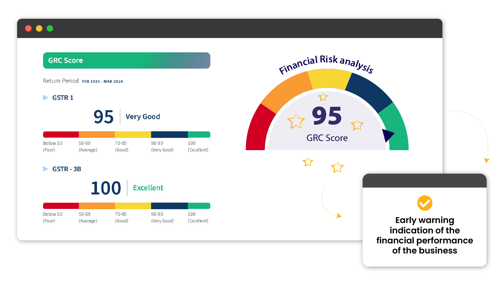 GRC scoring generates early warning signals by detecting deviations in one’s GST filing trends and alerting stakeholders with risk potential.